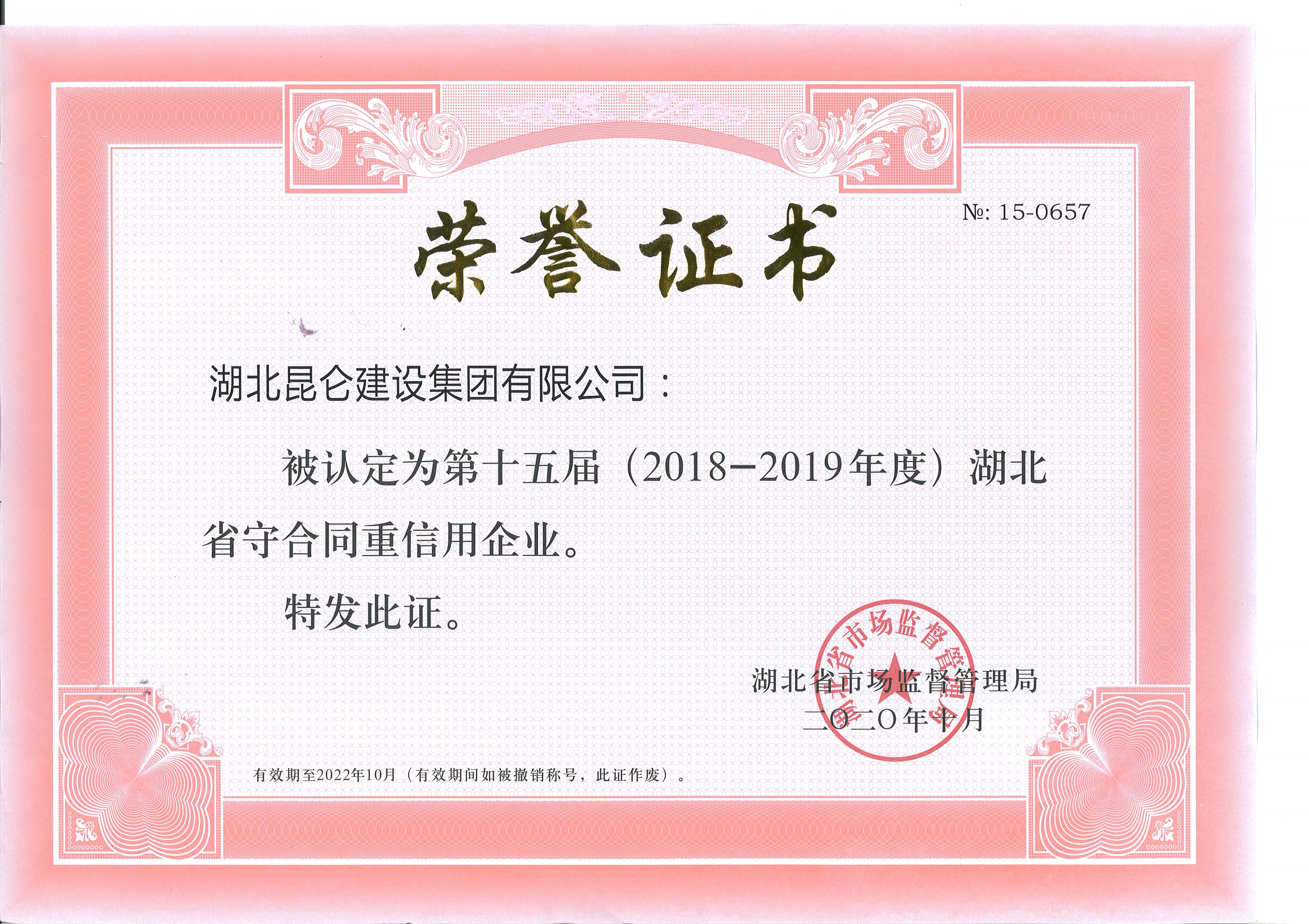 • 2018~2019年湖北省守合同重信用企業(yè)