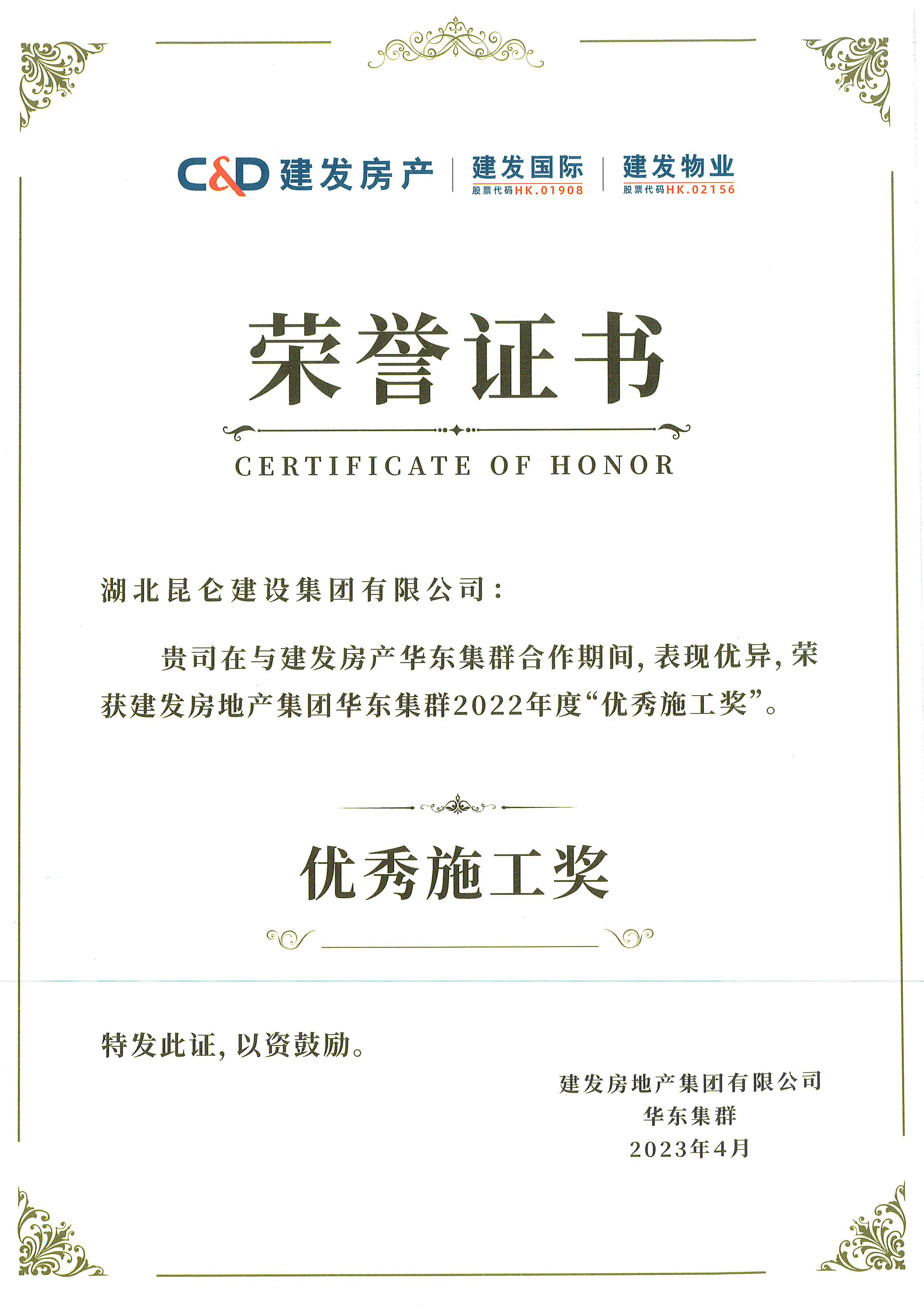 • 建發(fā)集團2022年度優(yōu)秀施工獎