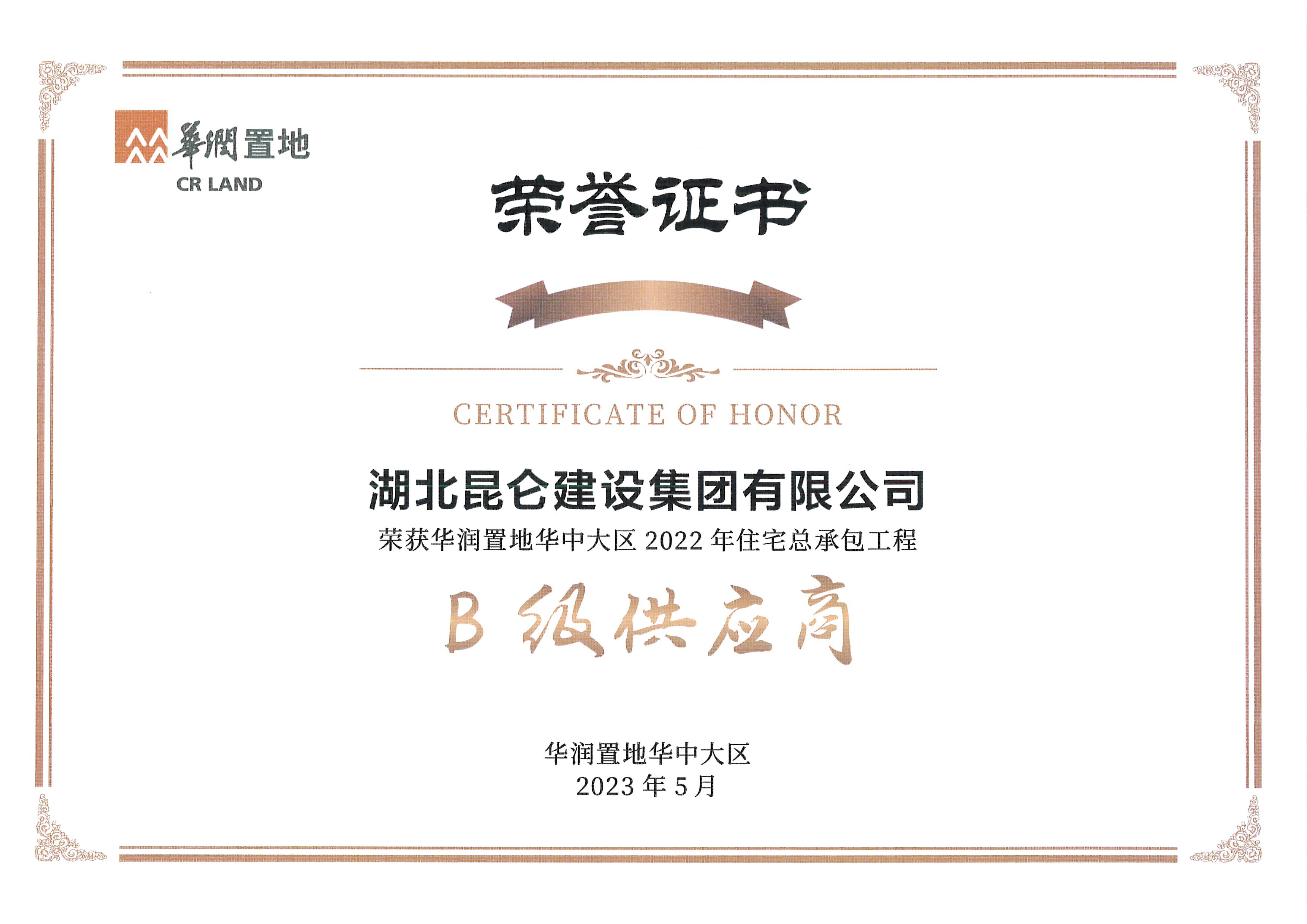 • 2023年5月榮獲華潤置地供應(yīng)商“攻艱克難獎”